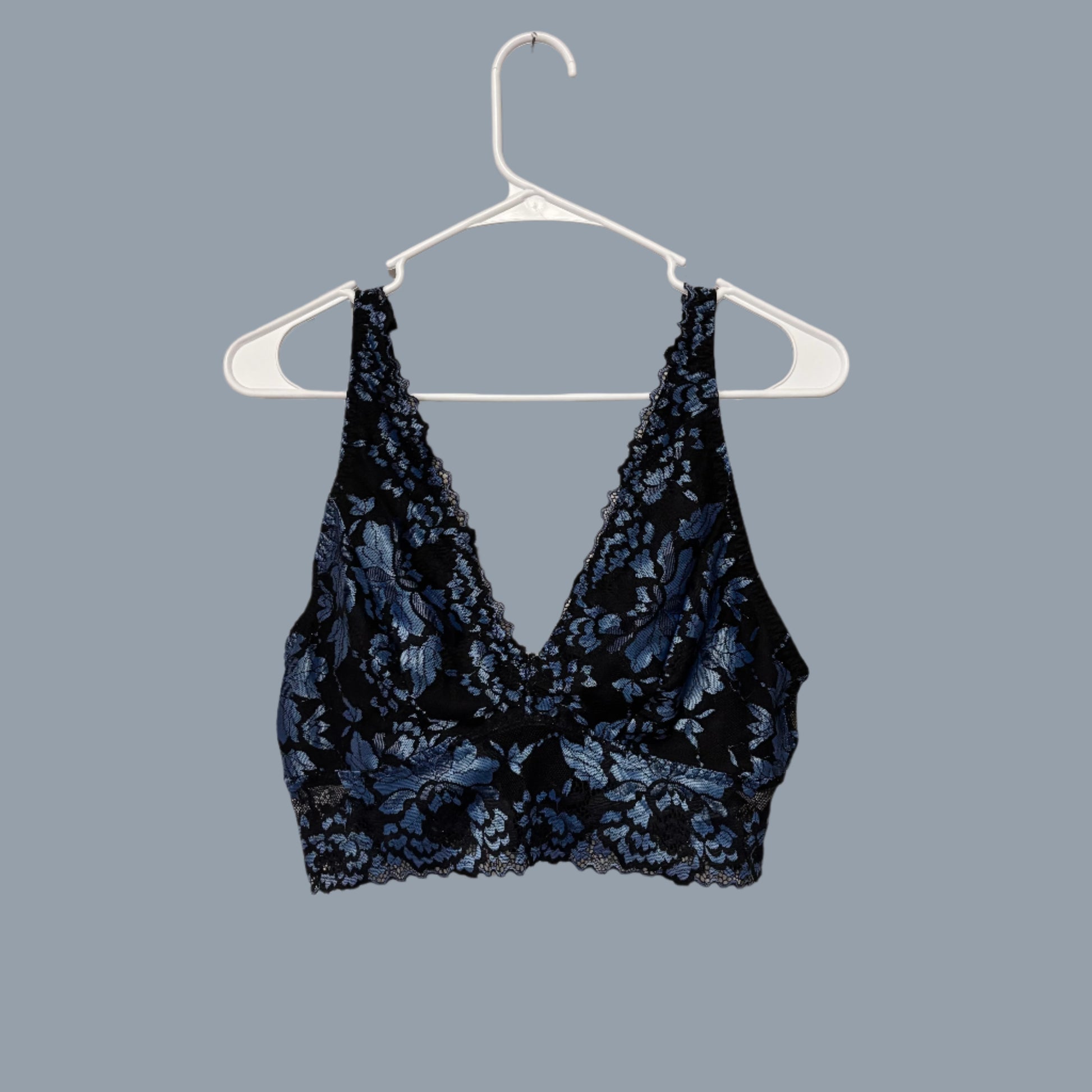 Bra - Unbranded - Plunge Front - Blue Floral Lace