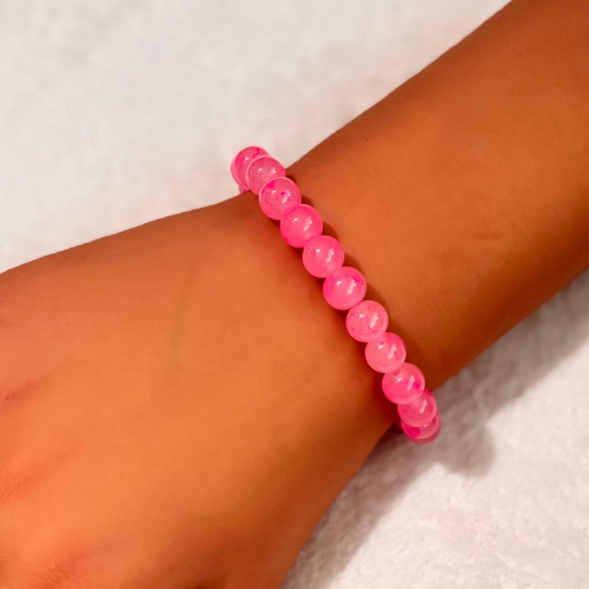 This 7-inch stretchy bracelet features vibrant bubble gum pink quartz beads that add a playful pop of color to any outfit. Its flexible design ensures a comfortable fit for everyday wear, while the stackable style lets you mix and match effortlessly. Perfect for casual looks, this bracelet brings a fun, youthful charm to your accessory collection.
