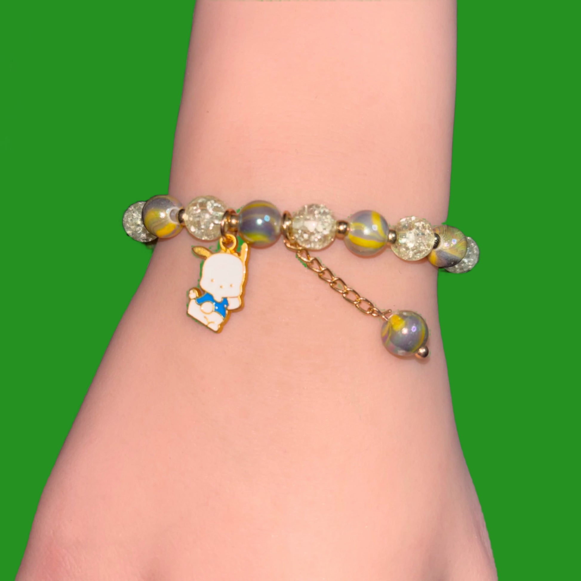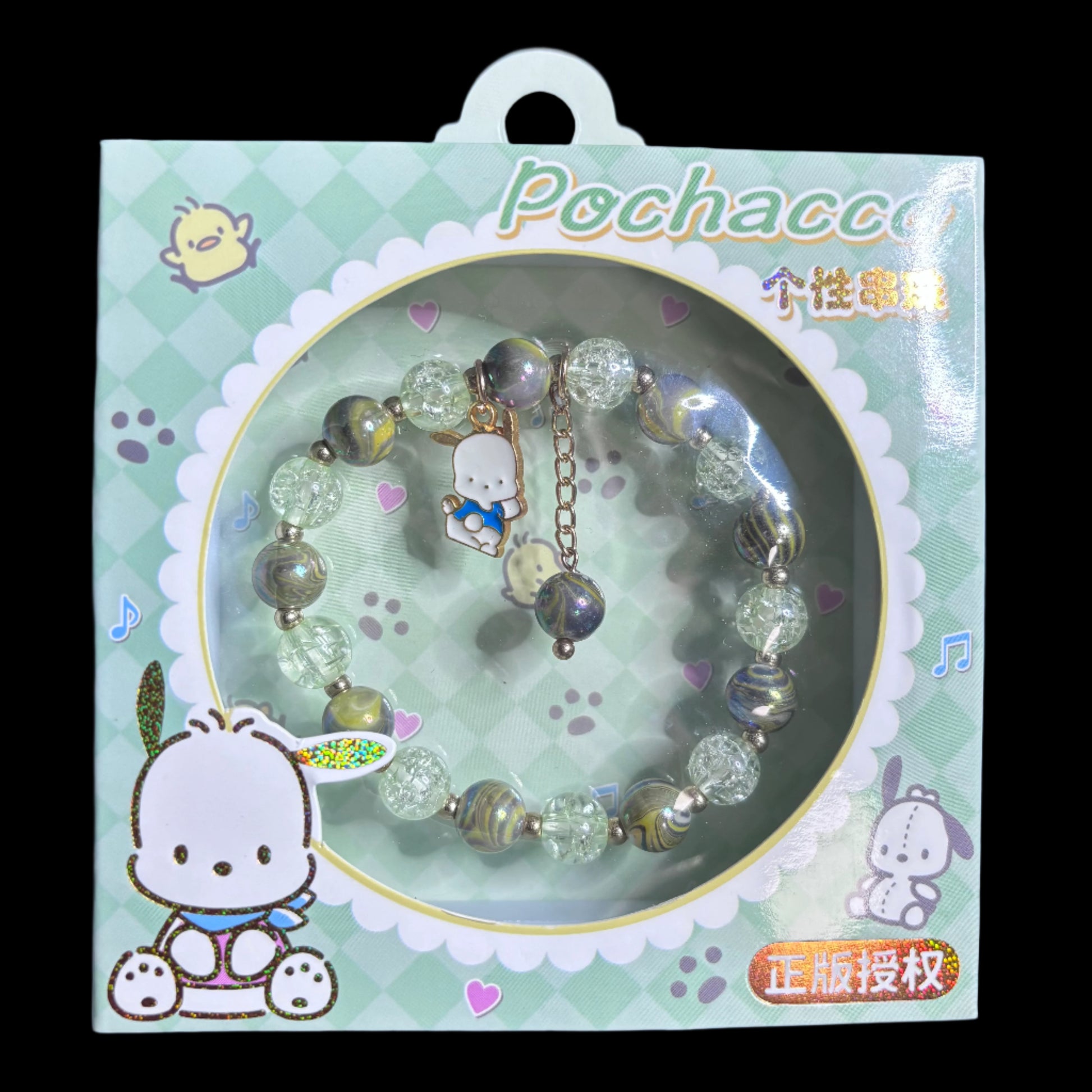 Add some Sanrio cuteness to your wardrobe with this Pochacco bracelet in a lovely shade of green. The elastic stretch makes it practical and comfortable, while the puppy charm adds an elegant touch. Perfectly packaged for gifting, this bracelet is sure to make you feel adorable every time you wear it.