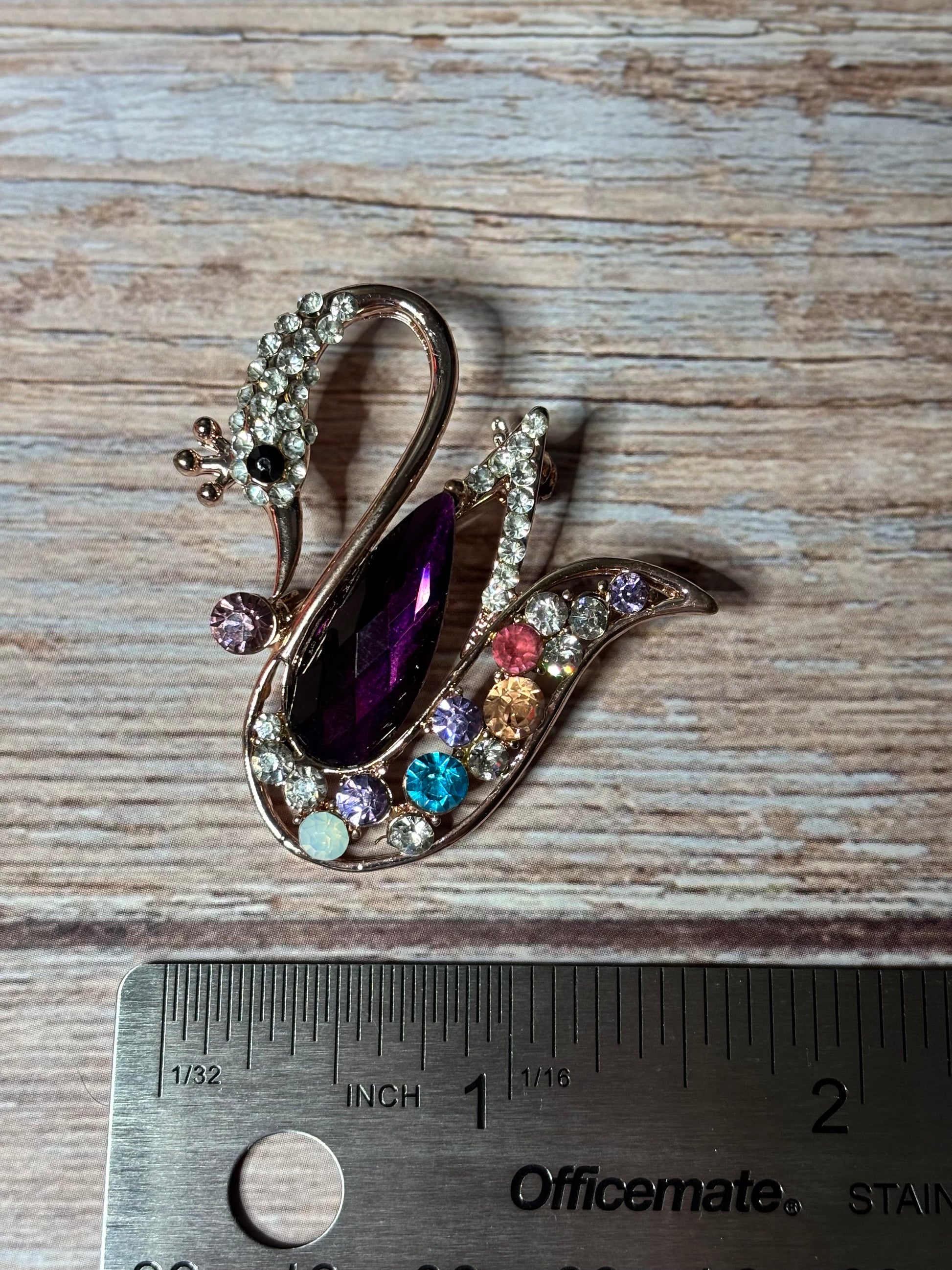 Make a statement with our Vintage Colorful Swan Brooch. Adorned with a dazzling purple rhinestone center, surrounded by a dazzling array of multi-colored glass rhinestones. Perfect for adding a touch of sophistication and elegance to any outfit.
