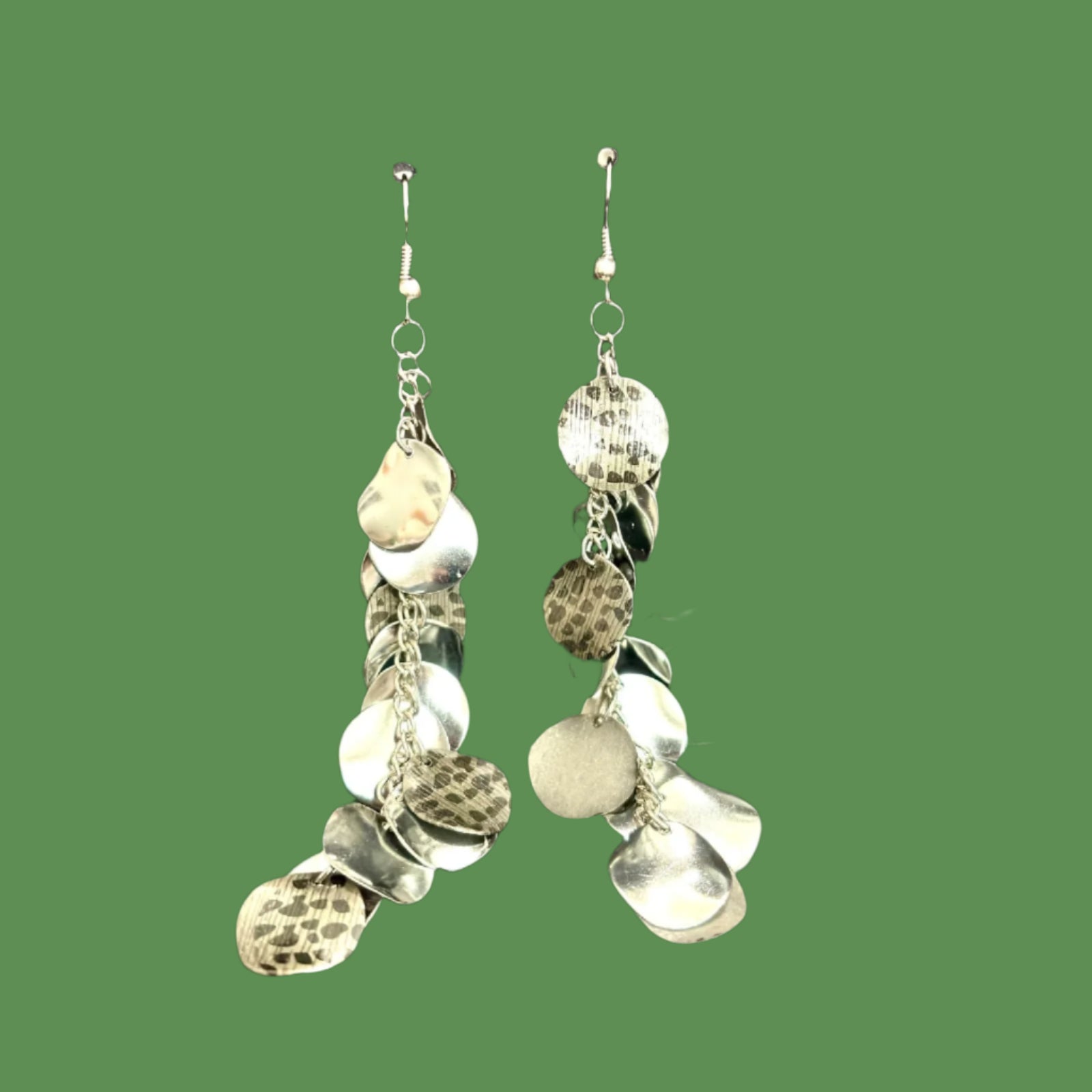 Indulge in retro elegance with our Dangle Silver and Leopard Print Earrings. These stunning dangle coin earrings exude an eclectic 80's vibe with their playful animal print. Add a touch of sophistication to any outfit with these statement earrings. Perfect for those who appreciate unique and luxurious fashion.