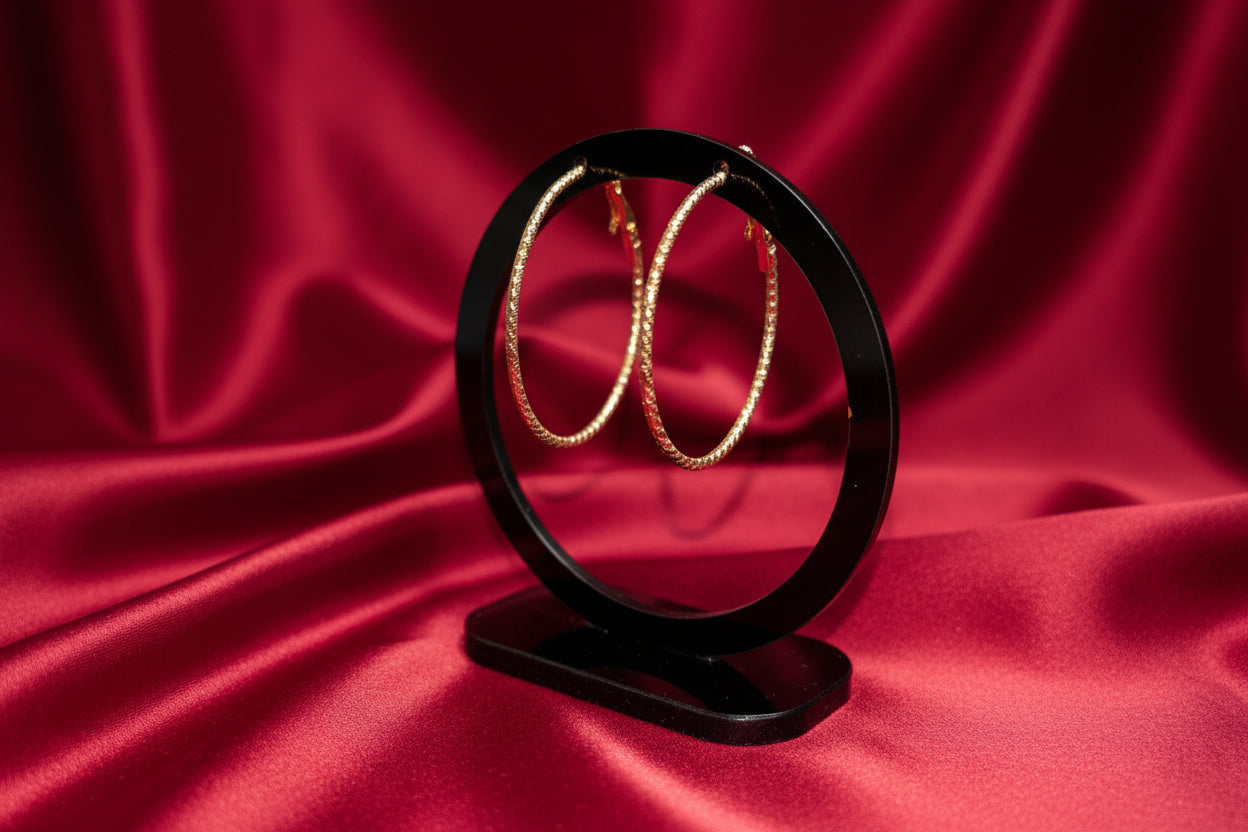 Gold tone textured hoops that effortlessly elevate any ensemble. These versatile earrings feature a refined post-back and lever closure system, ensuring a secure and comfortable fit throughout the day. The warm gold finish complements both casual and formal occasions, making them an essential addition to any jewelry collection. Simple yet sophisticated, these hoops deliver understated elegance with every wear.