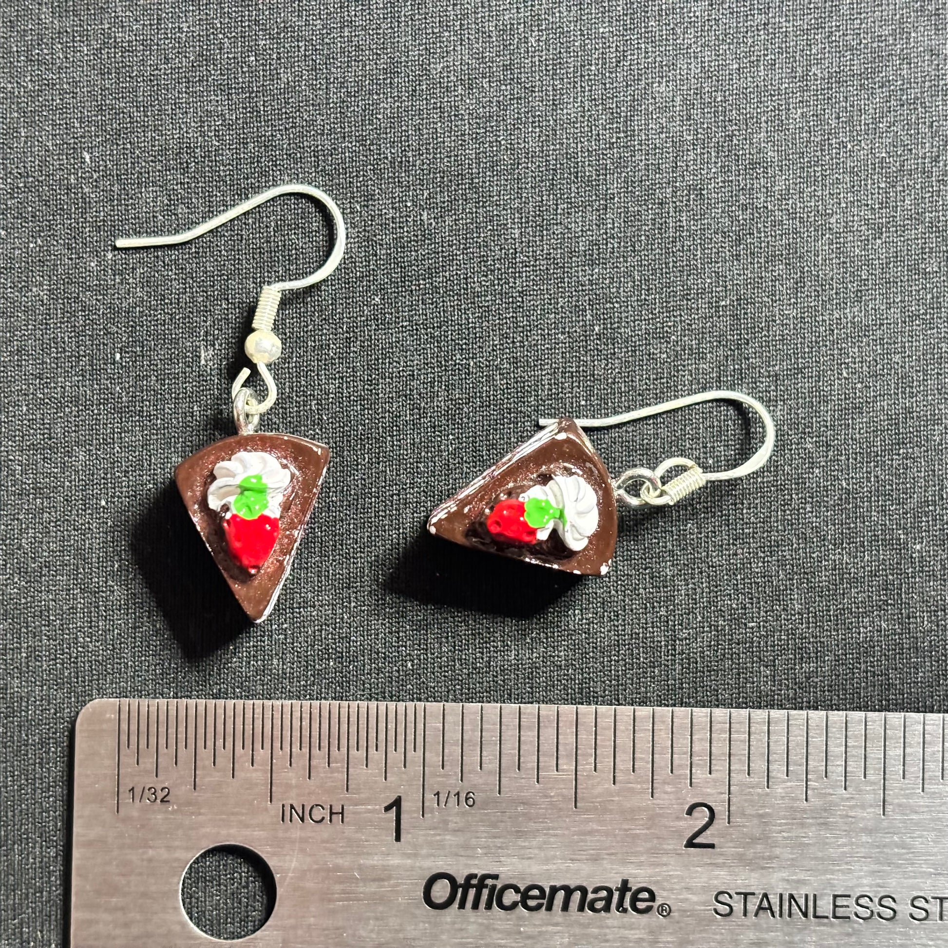 Indulge in triple the fun with these Slice of Chocolate Cake earrings! Satisfy your sweet tooth and upgrade your accessory game with a playful nod to your love for all things chocolate. The perfect treat for any occasion. (Warning: may cause cravings for actual chocolate cake.)