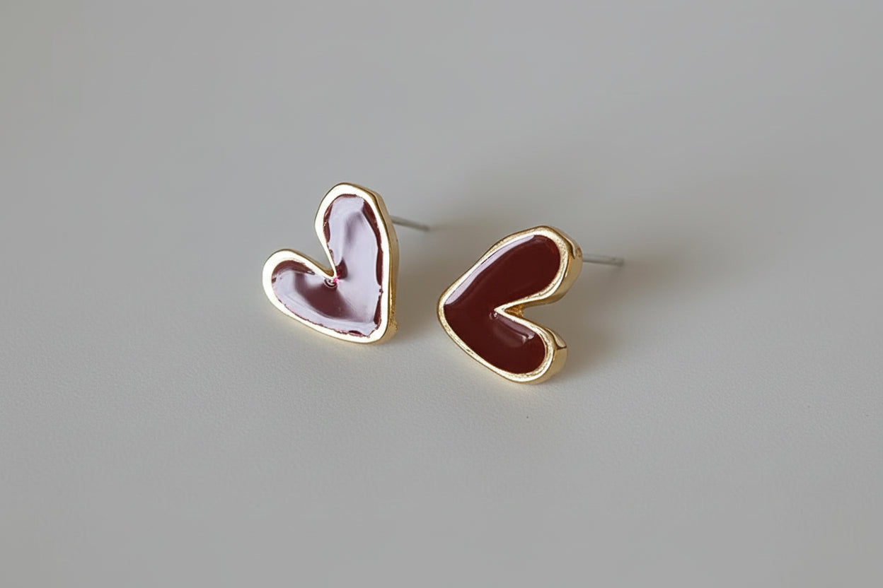 Elegant Red Heart Stud Earrings