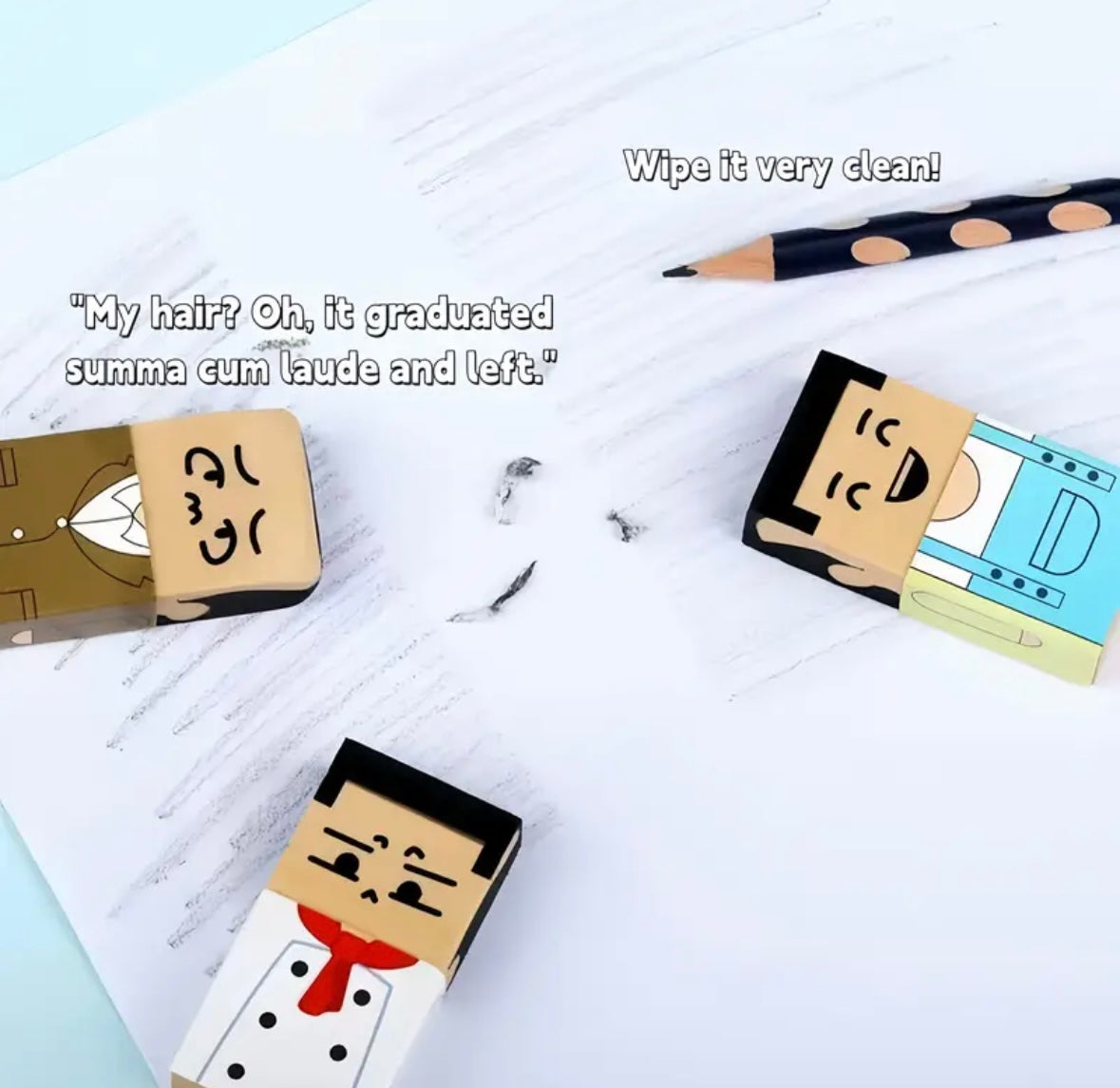 Add some humor to your mistakes with the Quirky Bald Man eraser! This innovative, hair-free design is made of rubber and comes in a random color. With convenient packaging and a touch of style, it's an essential stationary item for students and professionals alike. (Note: only one eraser is included, but it's a random choice - the fun is in the surprise!)