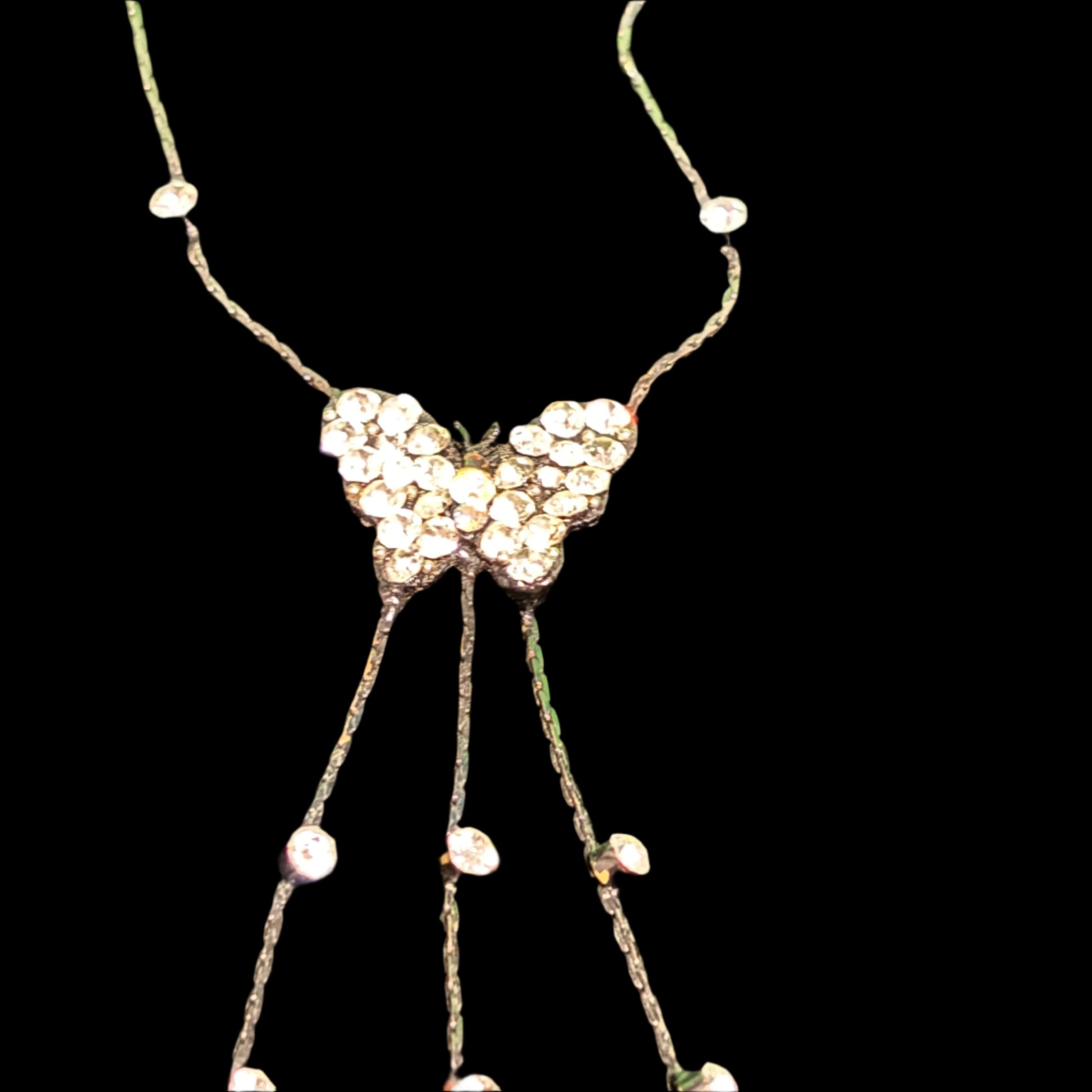 Elevate your hair game with our Hair Claws Butterfly Charm. This retro hair accessory features two claw clips connected by a black chain adorned with a delicate butterfly charm and rhinestones. Not only does it add a touch of sparkle and elegance to your style, but it also combines functionality with a decorative element. Upgrade your look effortlessly.