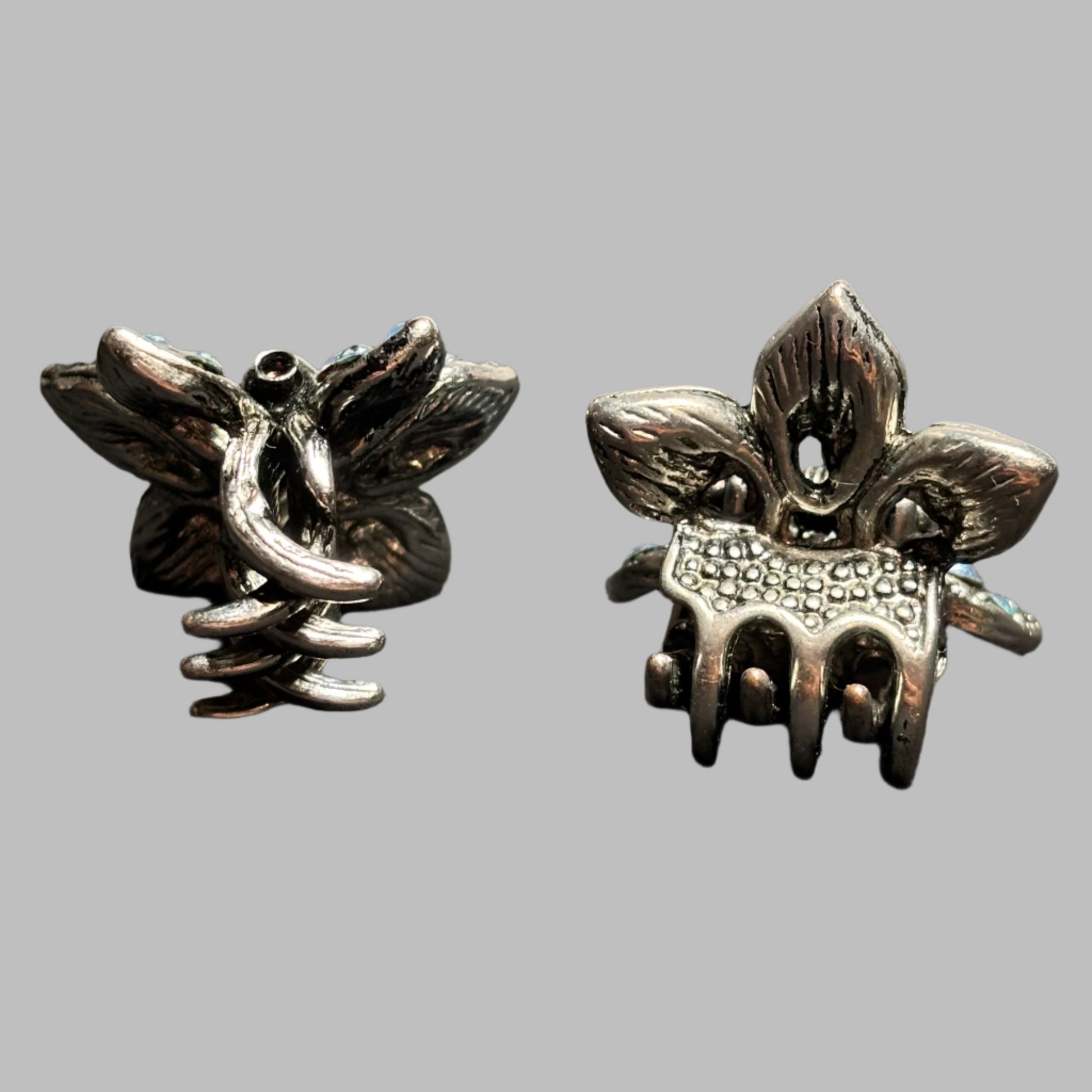 Enhance your hairstyle with these charming Hair Clips - Set of 2! The silver tone metal base and spring loaded claw mechanism ensure a secure hold while the vintage-inspired daisy and floral motif adds a touch of elegance. Perfect for adding a pop of color and sparkle to any look.