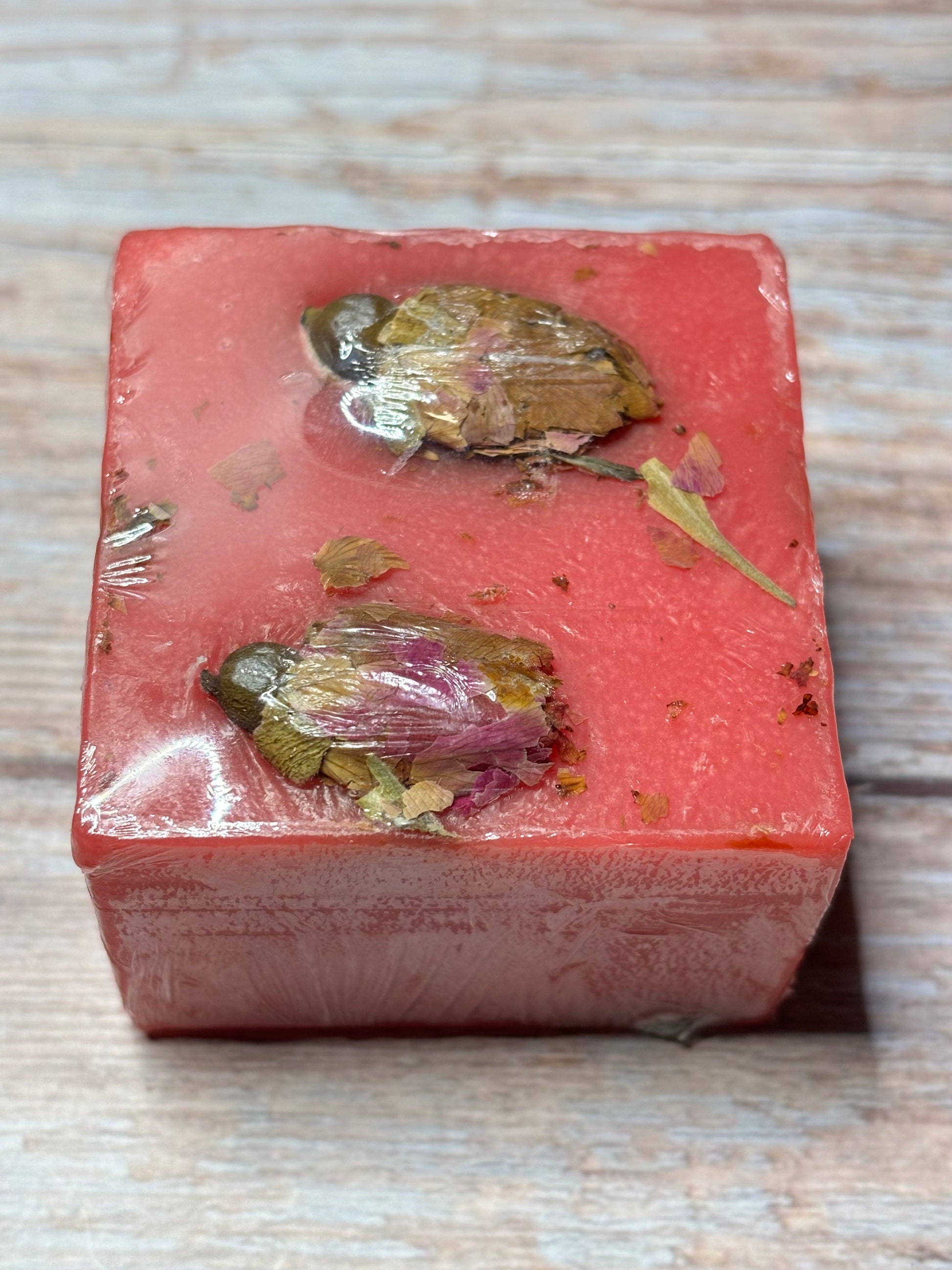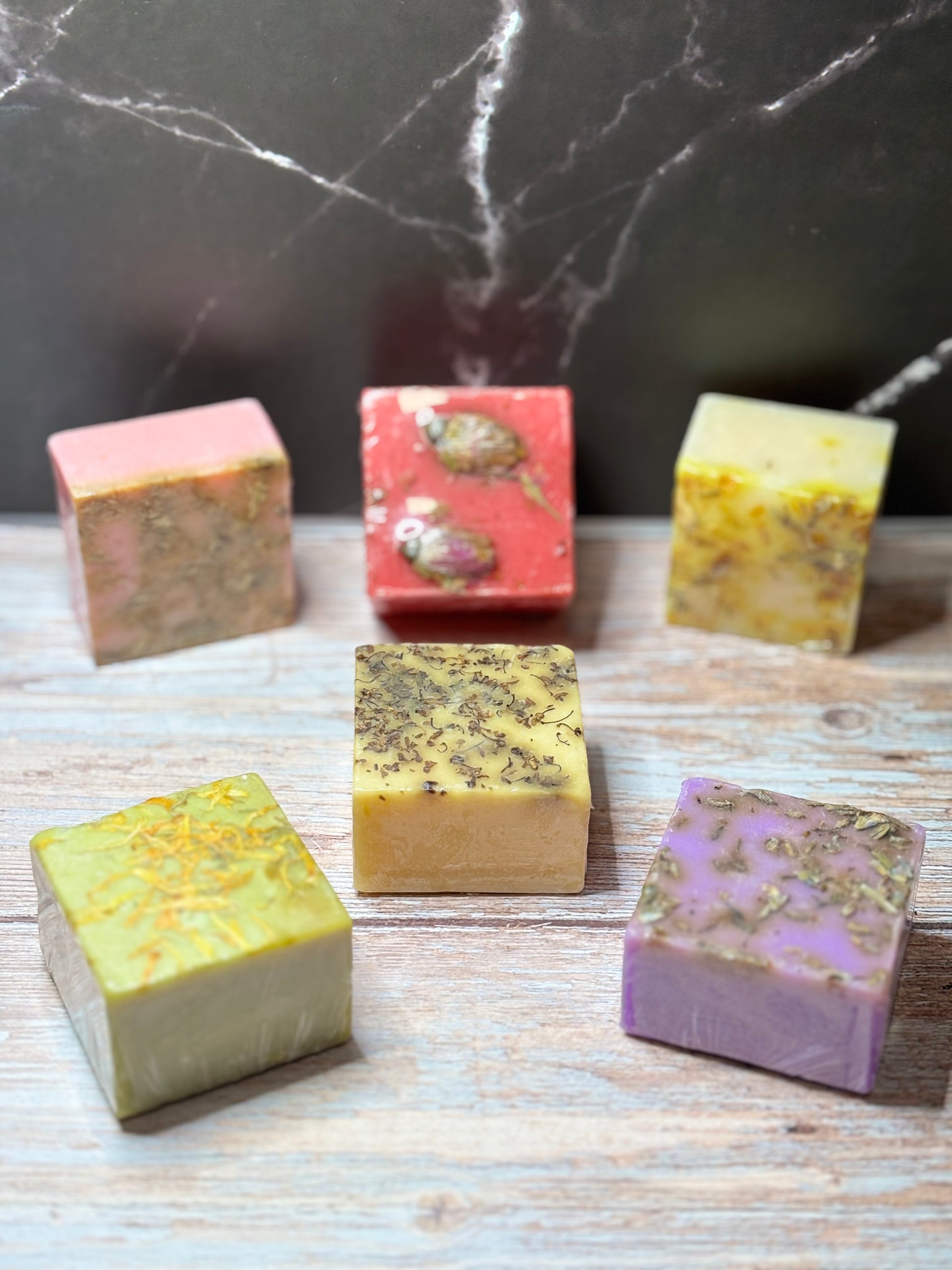 Indulge in our Handmade Flower Soaps, crafted with a blend of water and natural oils such as rose, jasmine, and lavender. Enriched with turmeric, chamomile, and shea butter, these soaps will leave your skin feeling nourished and rejuvenated. Treat yourself to the benefits of our botanical ingredients with every use.