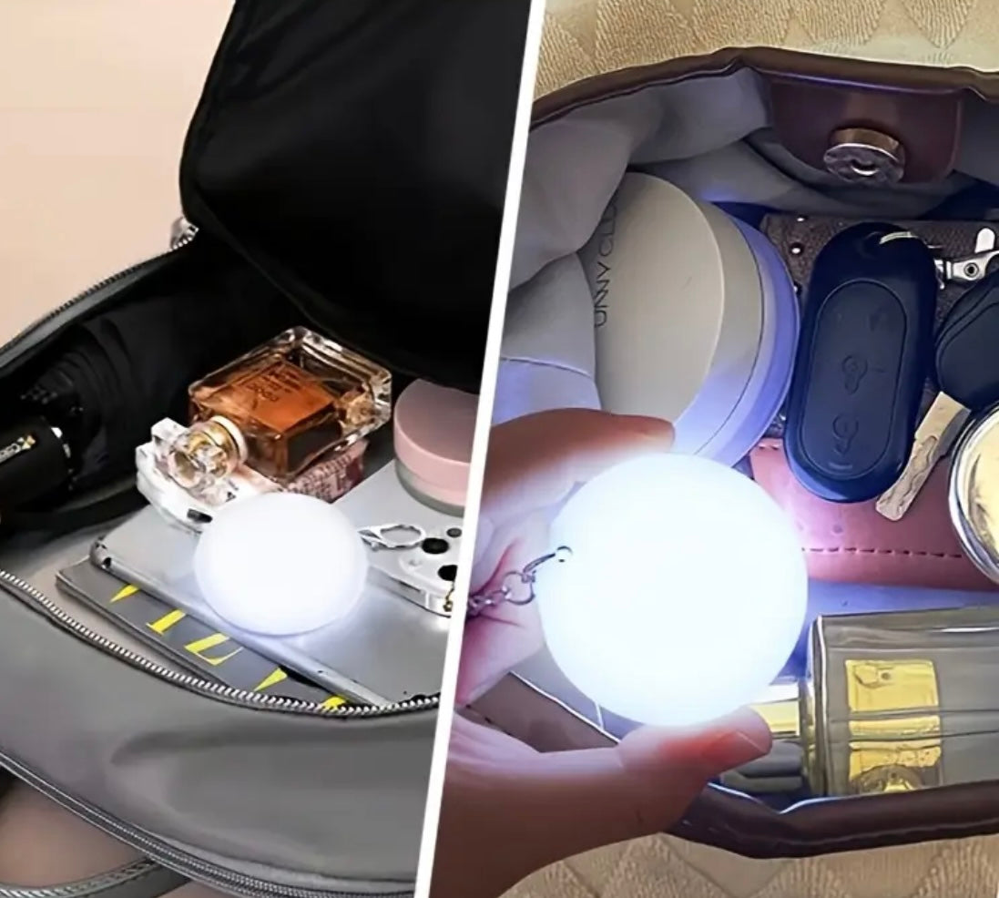 Effortlessly find your keys in the dark with our Mini Handbag Light! Simply click to illuminate the heart-shaped light and light up your purse. Conveniently charged with USB C and comes with a chain for easy hanging. No more fumbling, just bright light and convenience.