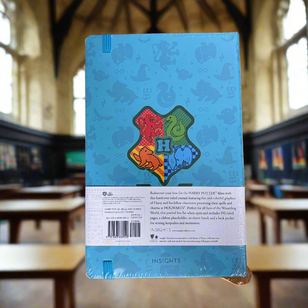 Tap into your inner wizard with this Harry Potter spells and charms Journal! This hardcover journal features archival paper, a ribbon placeholder, and an elastic band, making it the perfect place to record your adventures. With colorful graphics of Harry and his classmates, you'll feel like you're practicing magic at Hogwarts. Rediscover your love for the films and unleash your creativity with 192 ruled pages and a back pocket for storing keepsakes. Get ready to cast some spells!