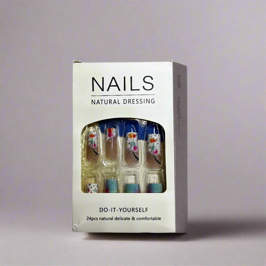 Transform your fingertips into mini masterpieces with our Abstract Color Pop press-ons! These fun nails feature a playful splatter of tiny black dots across the surface, with eye-catching blocks of orange, pink, and blue popping near the tips. The modern design blends abstract art with a delicious color palette that'll have everyone asking where you got your nails done! Perfect for adding a splash of personality to your look without the salon wait time!