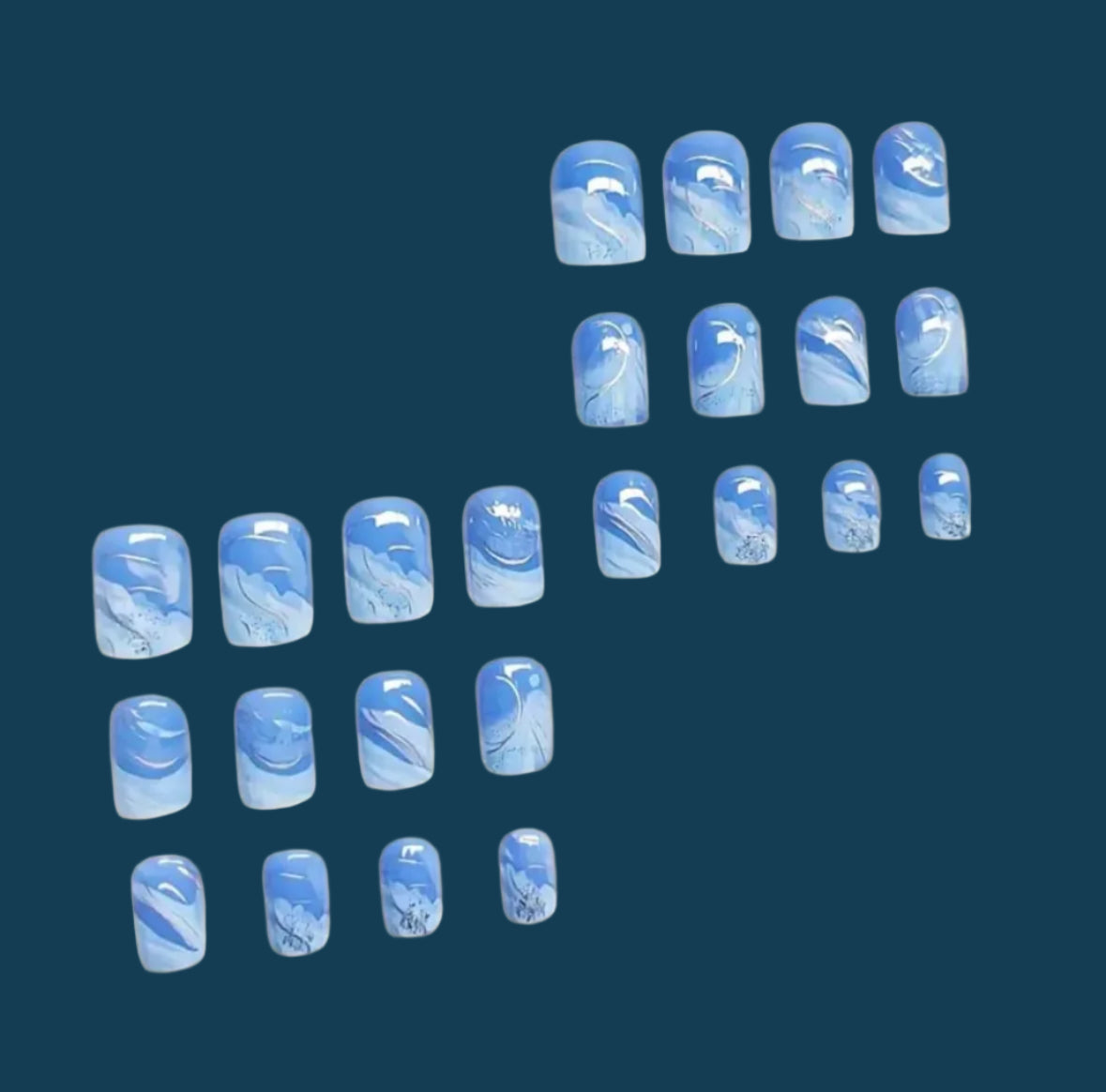 Indulge in effortless luxury with our Press on Nails in a stunning Blue Gradient Design with Gold Accents. The glossy nails provide a flawless finish, leaving you feeling confident and chic. Elevate your style with ease and make a statement with these premium nails.