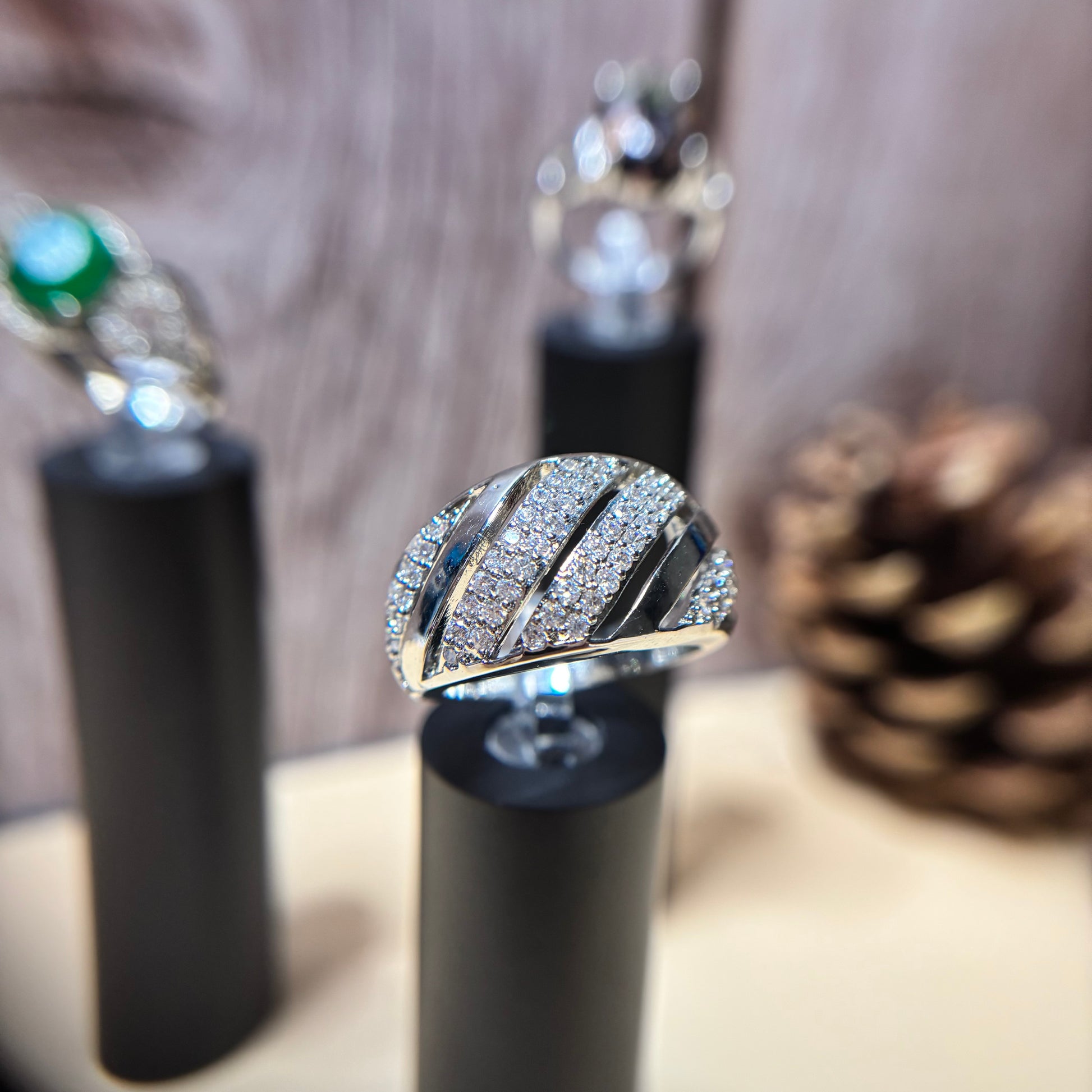 Ring Size 8 - Vintage Band Cocktail Ring with Cubic Zirconia Accents