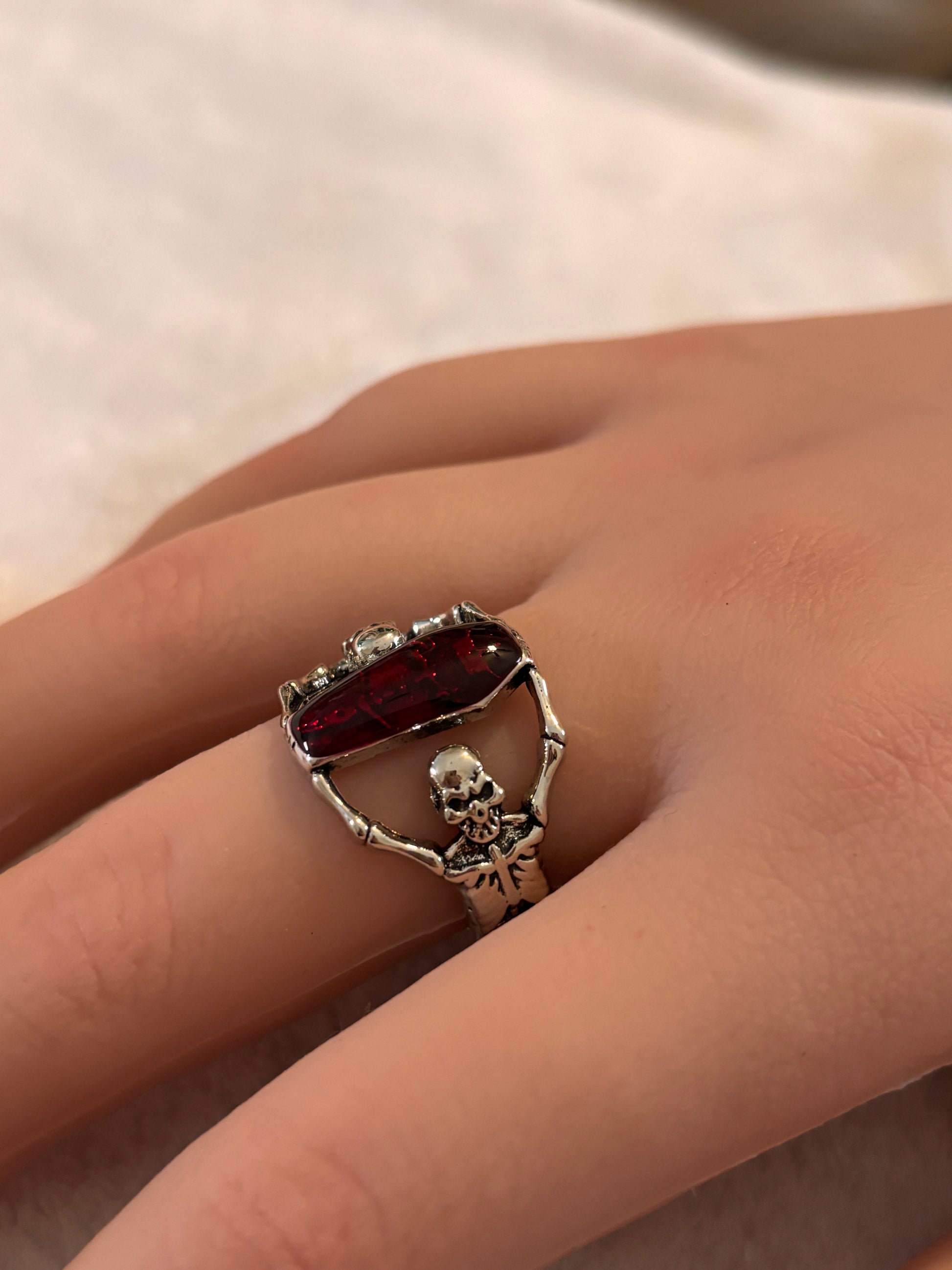 Ruby Coffin Skull Ring - Size 11