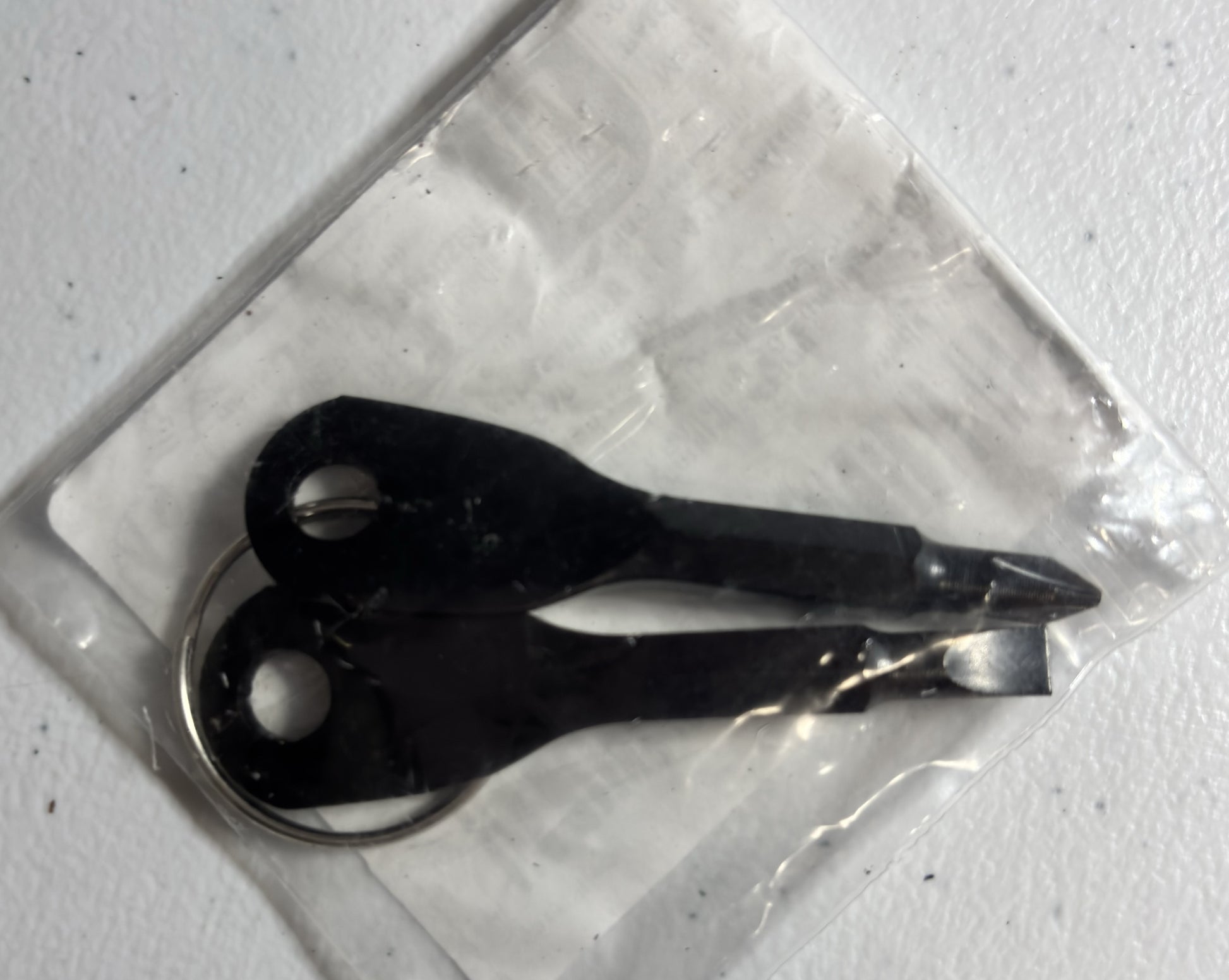 Introducing the Screwdriver Keys, the ultimate compact tool set for all your Phillips and Flathead needs. Made of durable stainless steel and designed in a sleek black key form, this set is perfect for on-the-go repairs or everyday use. With both screwdriver heads included, you'll always have the right tool at your fingertips. Get yours today!