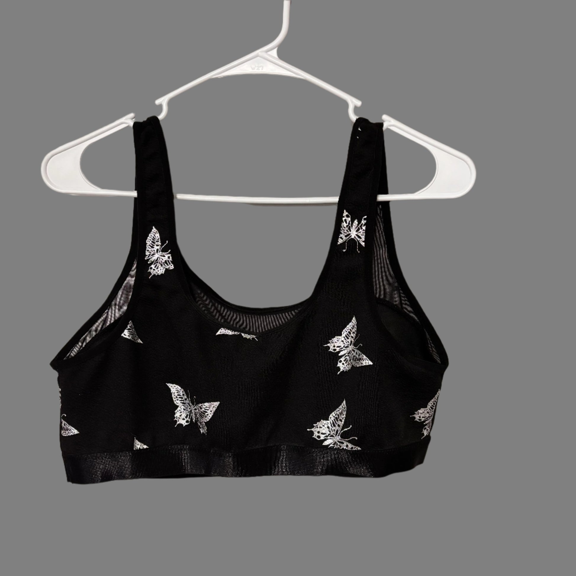 Bra - Mesh Outline with Shiny Silver Butterfly Design
