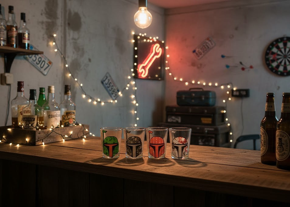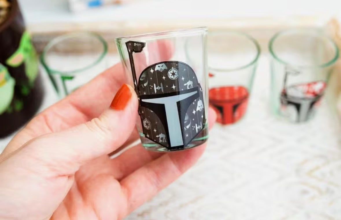 Bring Star Wars fandom to your holiday celebrations with this festive Boba Fett mini shot glass set. Each glass holds 2.5 ounces and features iconic Mandalorian bounty hunter imagery perfect for themed parties, collectors, or as a unique gift for devoted fans. The set combines pop culture appeal with practical barware, making it ideal for serving shots, espresso, or specialty beverages. A must-have for anyone who appreciates Star Wars memorabilia and wants to add character to their drinkware collection.