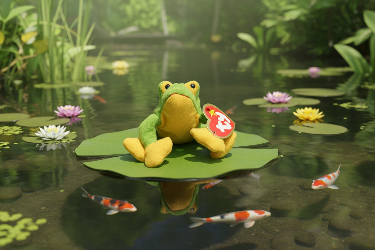 Smoochy the Frog stands as a quintessential Thai Beanie Baby from the legendary 1997 collection. This charming plush showcases a vibrant emerald body contrasted by a golden yellow belly and matching eye patches, completed with expressive black button eyes and a delicate red stitched mouth. Unlike standard stuffed animals, Smoochy is filled with PE pellets—the signature construction method that defined the Beanie Baby phenomenon and contributes to its distinctive tactile quality. A cornerstone piece for serious collectors, Smoochy's value fluctuates based on condition, tag authenticity, and rare manufacturing variations. Whether you're completing a nostalgic collection or seeking an authentic Thai merchandise investment, this frog embodies the craftsmanship and desirability that made Beanie Babies a cultural phenomenon.