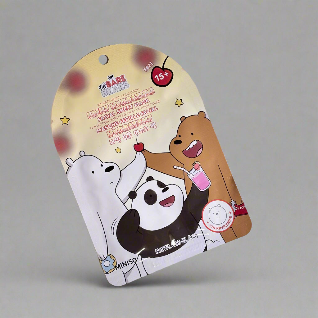 Revitalize your skin with the MINISO We Bare Bears Fruit Hydrating Facial Masks, available in delicious apple and cherry scents. These masks deliver intense hydration using natural fruit extracts that nourish and refresh your complexion. Perfect for a quick self-care moment, they leave your skin feeling soft, smooth, and glowing. Don’t miss the chance to indulge in skincare that’s both fun and effective—experience the refreshing boost your skin deserves.
