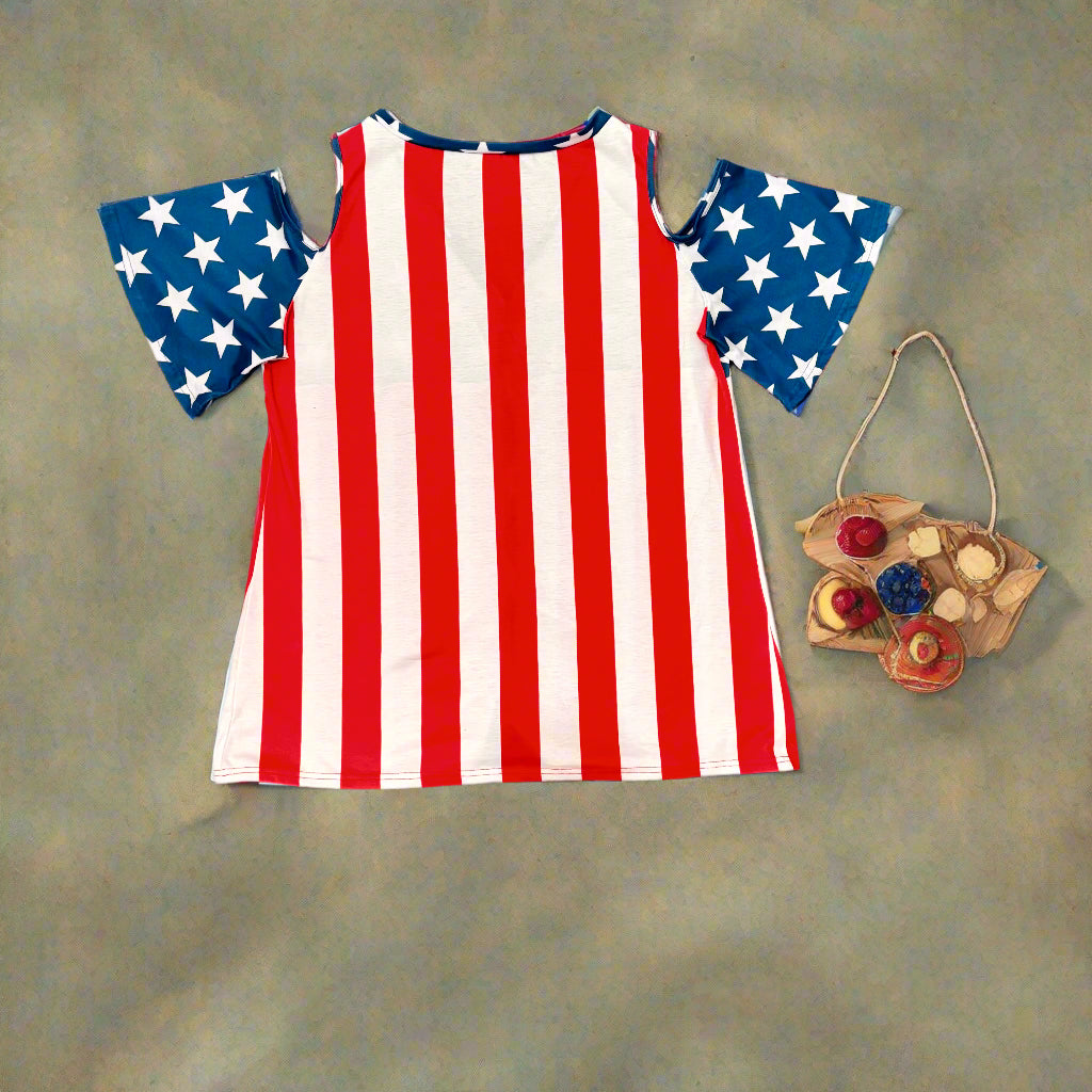 Ladies Top - Cold Shoulder Style - Red, White and Blue - Stars and Stripes